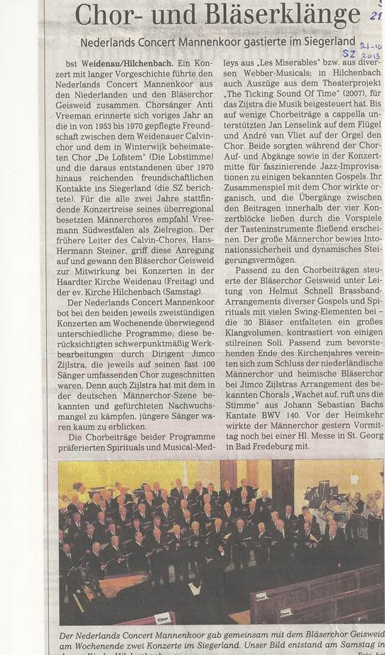Krantenbericht Siegener Zeitung van 21 oktober 2013