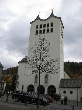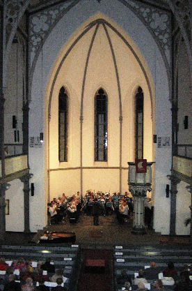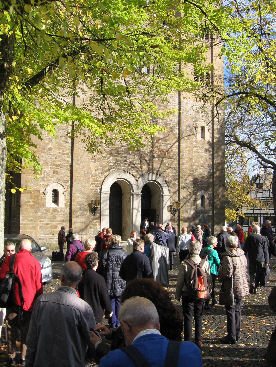 Dan is het zondag. We zijn op tijd op om ons op te maken voor onze bijdrage aan de kerkdienst in Bad Fredeburg. Na het voor en tegen te hebben bekeken, besluit Jimco, dat wij achter in de kerk het beste tot ons recht kunnen komen. De kerk is praktisch vol. De "Messe Breve" vormt de hoofdmoot van onze bijdrage. Het " Haleluja", "Morte Cristi", "The Foundation" en tot slot "Wachet auf" vormen de geweldige slotakkoorden van onze muzikale prestaties. Als je daarbij de hoogstaande muzikale bijdrage van André van Vliet daarbij optelt, is het geweldige appplaus van de kerkgangers na de lovende woorden van de pastoor te begrijpen.